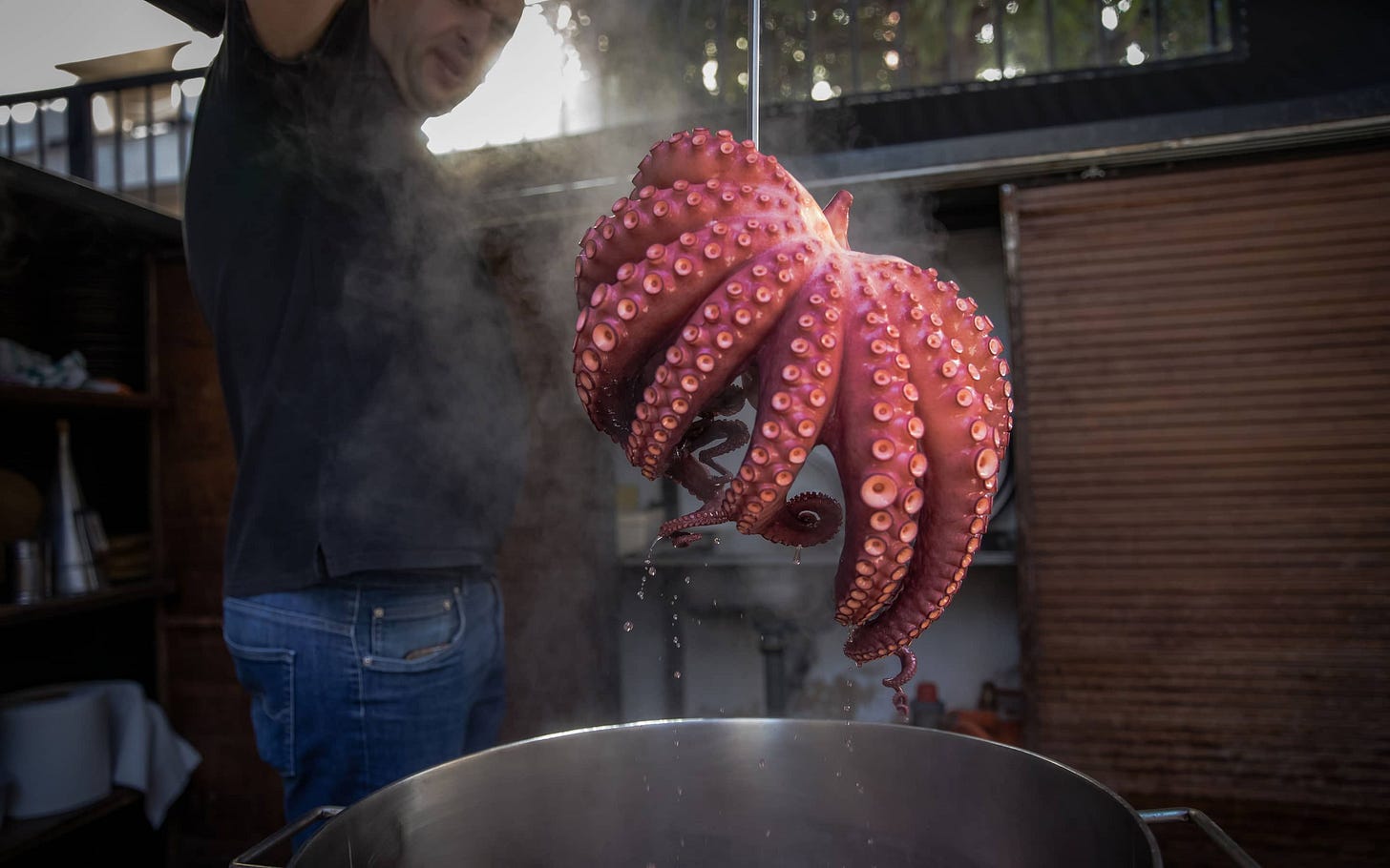The octopus arms are then vacuum-packed and placed into a gigantic pressure cooker. There, the tentacles simmer in their own juices until they take on the deep red colour that gourmets around the world adore.